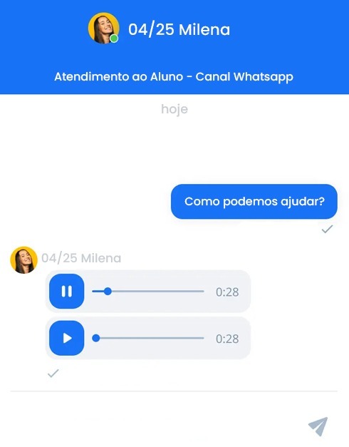 Diferente dos chatbots comuns, nossa tecnologia entende mensagens de voz.