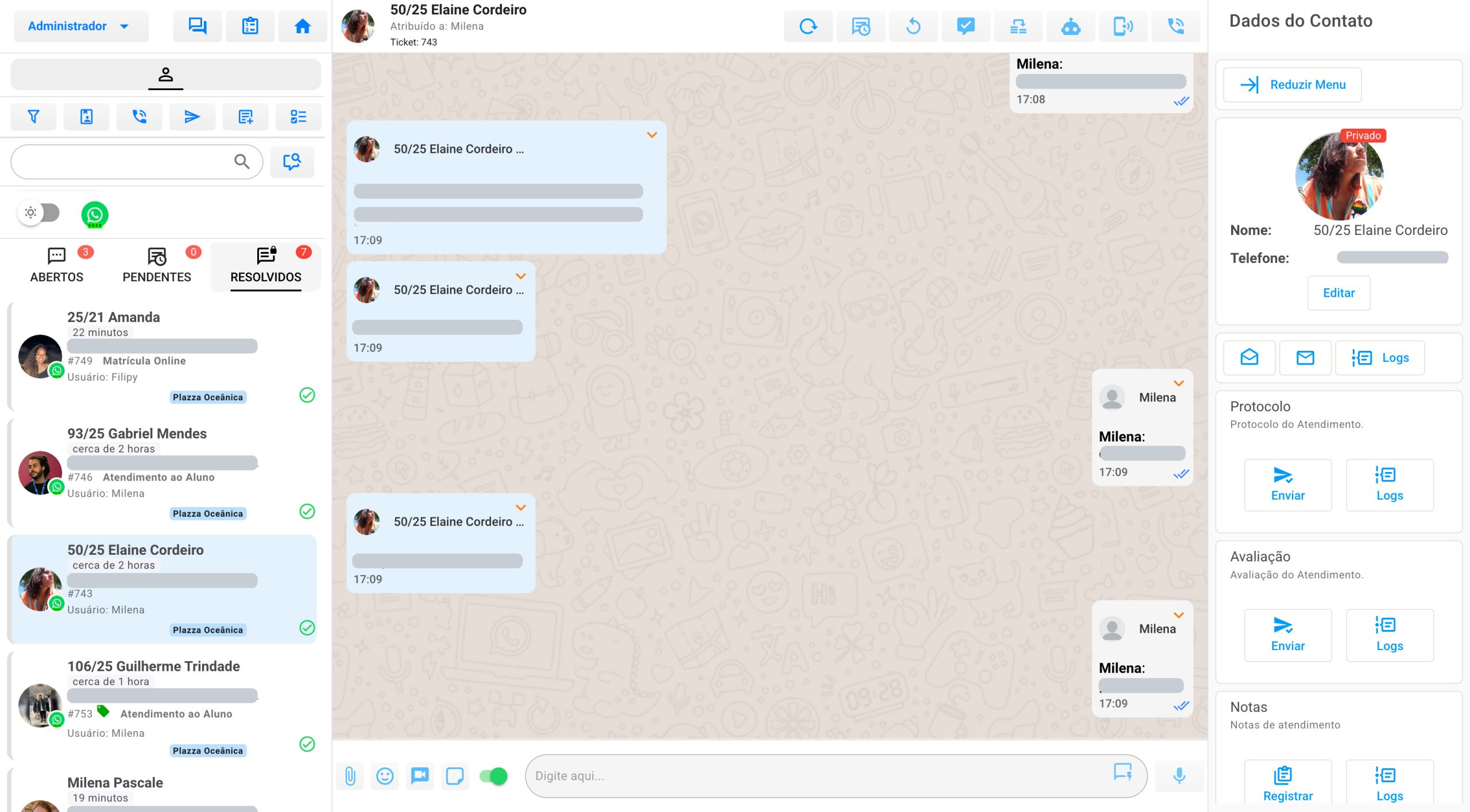 O atendente pode transferir o atendimento para outro atendente ou setor facilmente.
